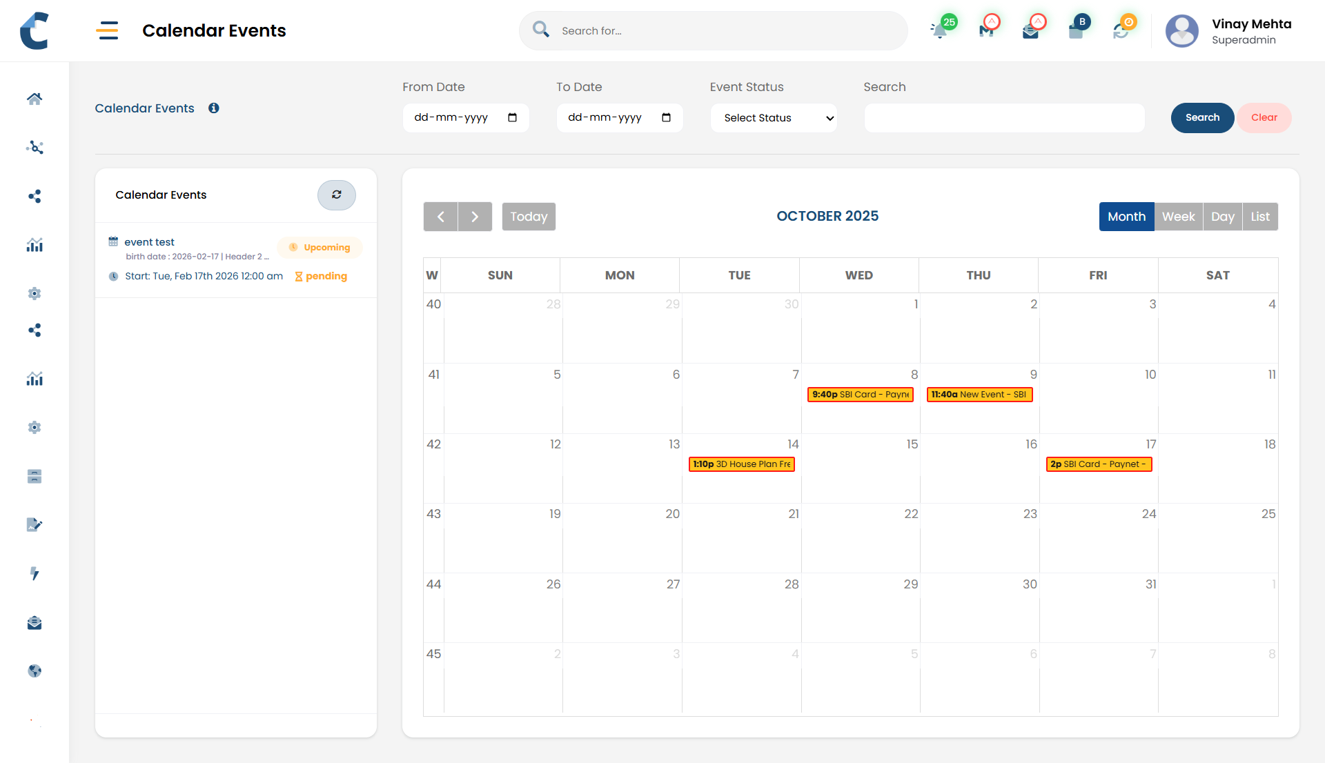 - Users can see pending actions and upcoming events in one place