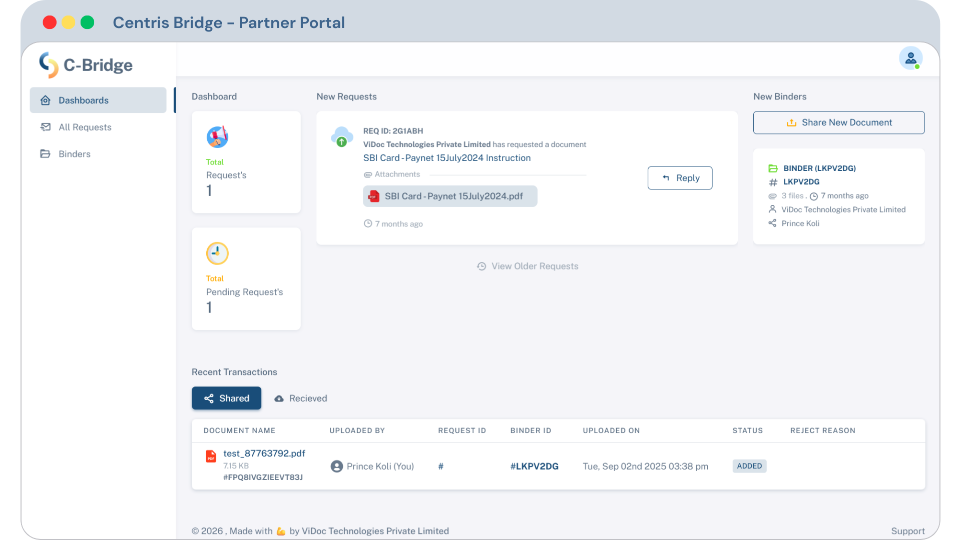 Centris Bridge is the Business Partner Portal of Centris, designed to manage document exchange with external stakeholders in a secure and organised manner. Instead of relying on email attachments or shared folders, it provides a controlled environment where documents can be submitted, reviewed, and tracked with clarity.