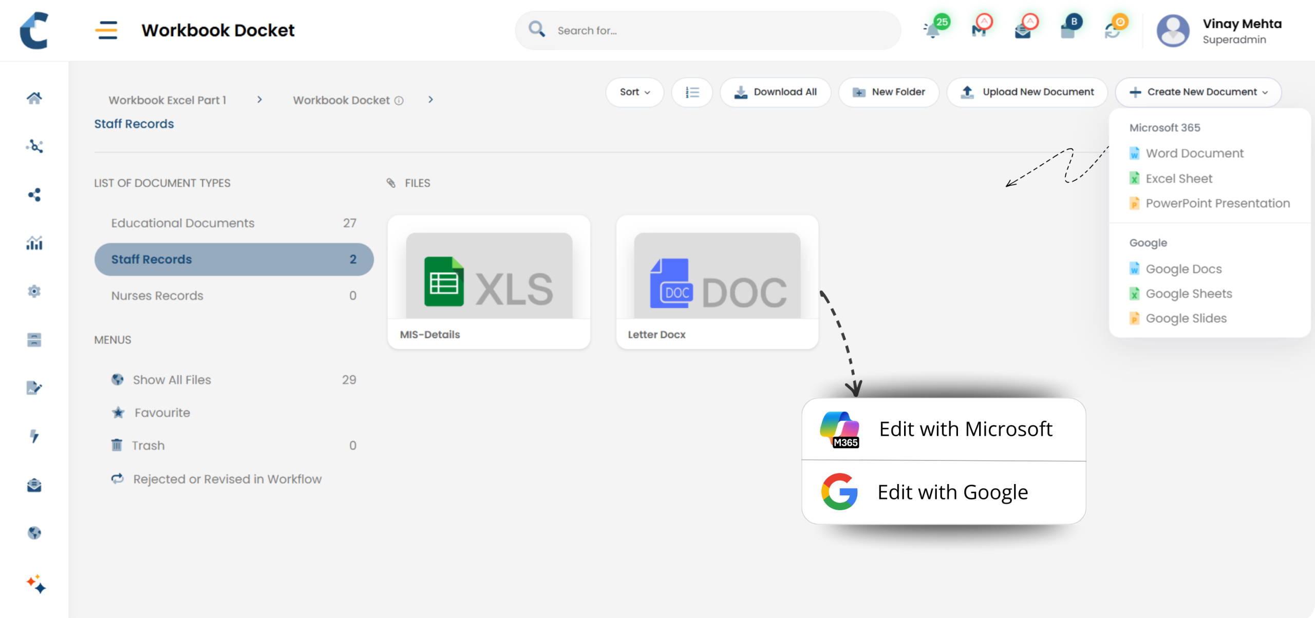 Centris integrates with Google and Microsoft 365, allowing teams to edit documents in familiar tools while keeping storage, access, and governance centralised - no downloads, duplicates, or loss of control.