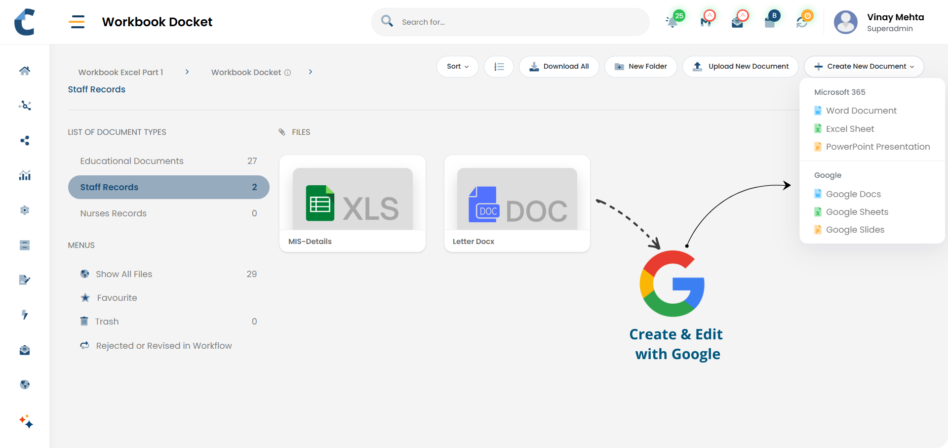Create and edit documents using Google Workspace tools, while keeping them securely managed in Centris.